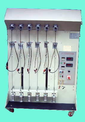本機專門試驗插頭片與導體之接合強度, 及導體線之抗突拉強度.將插頭片固定於夾具內,導線尾端連接衝錘桿,即可測試突 拉.之後,吊上砝碼,進行迴轉試驗及通電 流試驗.