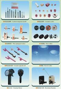 馬達線嘴;碳化鎢線嘴;紅寶石線嘴;防跳線器;陶瓷瓷眼瓷輪;導線輪;陶瓷豬尾圈;線桶;張力計,張力器.
