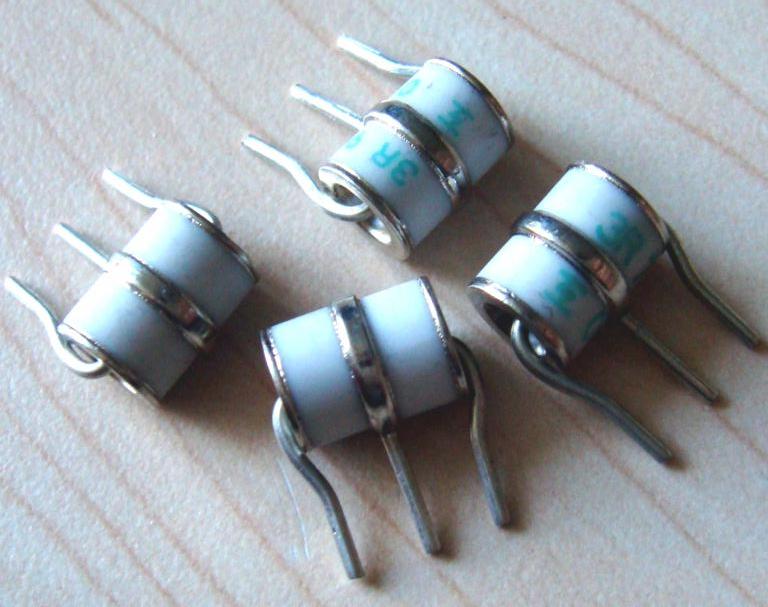 三極陶瓷氣體放電管,尺寸:7.2/8*10mm,帶有失效保護卡。耐流8/20us:10KA*2。耐工頻電流50Hz:10A*2。放電電壓:420V,350V,250V,230V,90V。