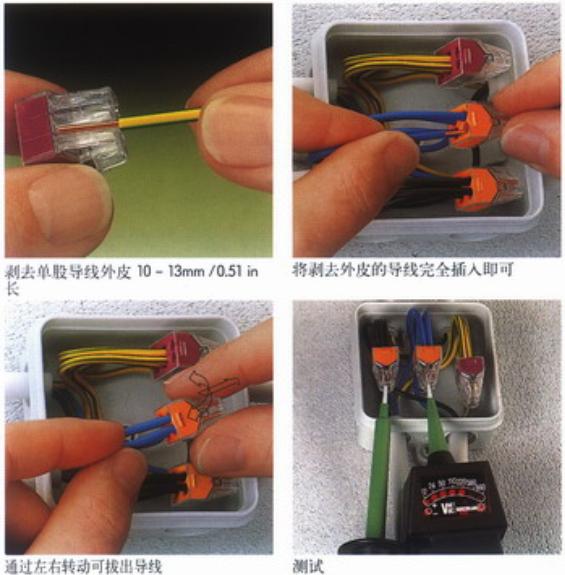 萬可(WAGO)773系列照明端子特點安全 – 無導線松脫 、膠布脆化的危險,透明安全看得見。方便 – 具測試孔,量測電壓無須拆除膠布。.快速 – 直接插接,接錯可拔出,重復再接。可靠 – 每個接點彈片獨立,不同線徑導線亦可,安全短接。單芯線及七芯硬絞線可直接插入。PA 6.6材質,永久耐溫105℃,不脆化。孔最大可接 6mm (2mmφok) / 32A / 400V。