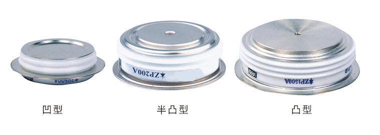普通整流管平板半凸型:ZP100A、ZP200A、ZP300A、ZP400A、ZP500A、ZP600A、ZP800A、ZP1000A、ZP1200A、ZP1400A、ZP1500A、ZP1600A、ZP1800A、ZP2000A、ZP2500A、ZP3000A;