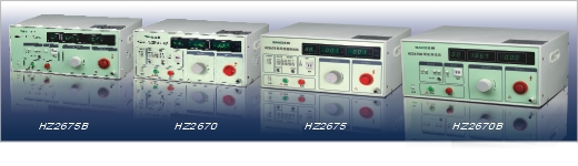 | HZ2670,HZ2675,HZ2675B耐壓泄漏測試儀是測量絕緣耐壓泄漏等安全參數的測試儀,測試參數都可能預設定,性能穩定,功能齊全可靠性高,適合于生產電子設備企業使用。 技術參數 HZ2670 HZ2675 耐壓測試 測試電壓 0-5KV連續可調 測試電壓波形 50Hz正弦波 輸出容量 200VA 750VA 截止電流范圍 0~10mA 0~100mA 測試時間 1-99S ∞ 泄漏電流測試 測試電壓 0~250V 測試電流范圍 0~2mA 0~20mA 隔離變壓器容量 200VA 500VA 指示 LED數字顯示 外形尺寸 400W×205H×300D(mm) 400W×205H×350D(mm) 重量 17Kg 21.5Kg HZ2670B HZ2675B 耐壓測試 測試電壓 0-5KV連續可調 測試電壓波形 50Hz正弦波 輸出容量 200VA 750VA 截止電流范圍 0~10mA 0~100mA 測試時間 1-99S ∞ 外形尺寸 400W×205H×300D(mm) 質量 15.5Kg 17Kg |