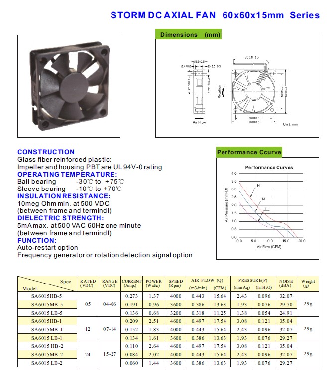 SA6015HB-5G直流系列散熱風扇軸流風機