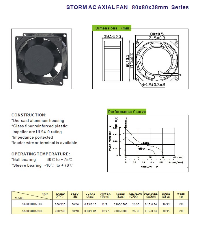SA8038HB-11K交流系列散熱風扇軸流風機