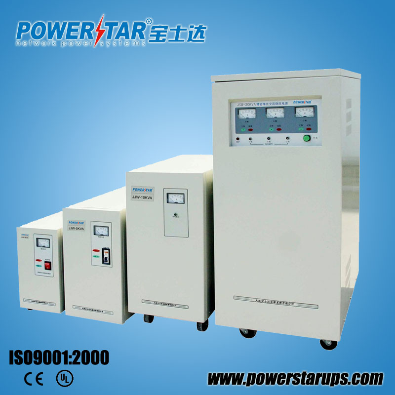 JJW(單相)系列精密凈化交流穩(wěn)壓電源,根據(jù)庫柏的“正弦能量分配理論”,結(jié)合高效寬帶濾波網(wǎng)絡(luò)綜合設(shè)計而成,代表了交流穩(wěn)壓技術(shù)的最新發(fā)展水平,其主電路由正弦能量分配器和大功率濾波器并聯(lián)組成,當(dāng)市電輸入電壓變化或負(fù)載電流變化時,正弦能量分配器以半個周期的正弦波電流形式,將能量按需要精確地輸入到電感器,調(diào)整電感器的電感量,確保輸出電壓高精度穩(wěn)定;該系列電源穩(wěn)壓范圍寬、穩(wěn)壓精度高、影響速度快,并能有效地抑制電網(wǎng)噪音和尖峰干擾、可靠性高性能穩(wěn)定,并且造型美觀大方、品種齊全,指針與數(shù)顯表頭供用戶任選,可適應(yīng)不同用戶的需要,是目前凈化交流穩(wěn)壓電源產(chǎn)品中最受用戶歡迎的優(yōu)選機種之一。