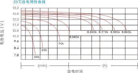 NP系列密封電池具有的良好的放電特性,尤其是大電流放電的特性更為優越。電池放電的容量取決于放電電流,終止電壓和放電時間。 不同放電率的放電性能和終止電壓選擇如下圖: