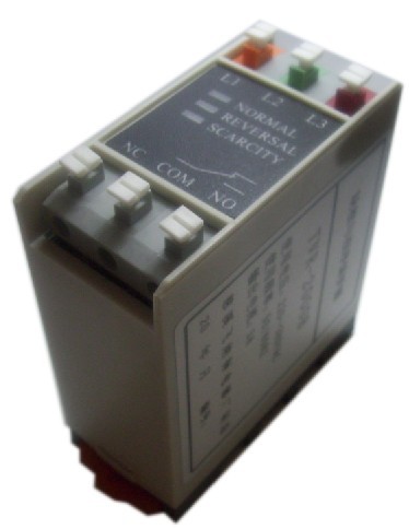 1.   L1、L2、L3三相接線正確,監視器綠燈亮,繼電器吸合;如果相序接錯,監視器黃燈亮,只要交換L1、L2、L3三相中的任意兩相,監視器就能認定該相序并正常工作。當被保護的設備正常工作后出現黃燈亮,繼電器不吸合時,應視為外線路相序誤接,監視器具有防誤接保護功能;
