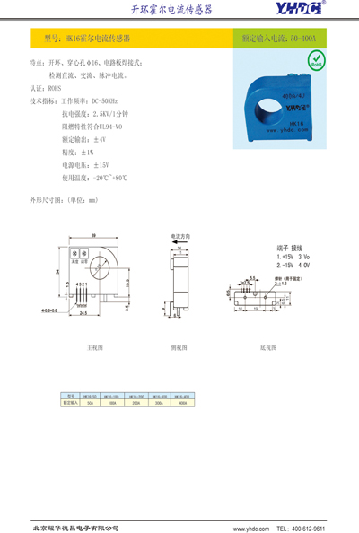 特點:開環、母線內置、可穿心電路板焊接式 用途:直流電流、交流電流、脈沖電流檢測