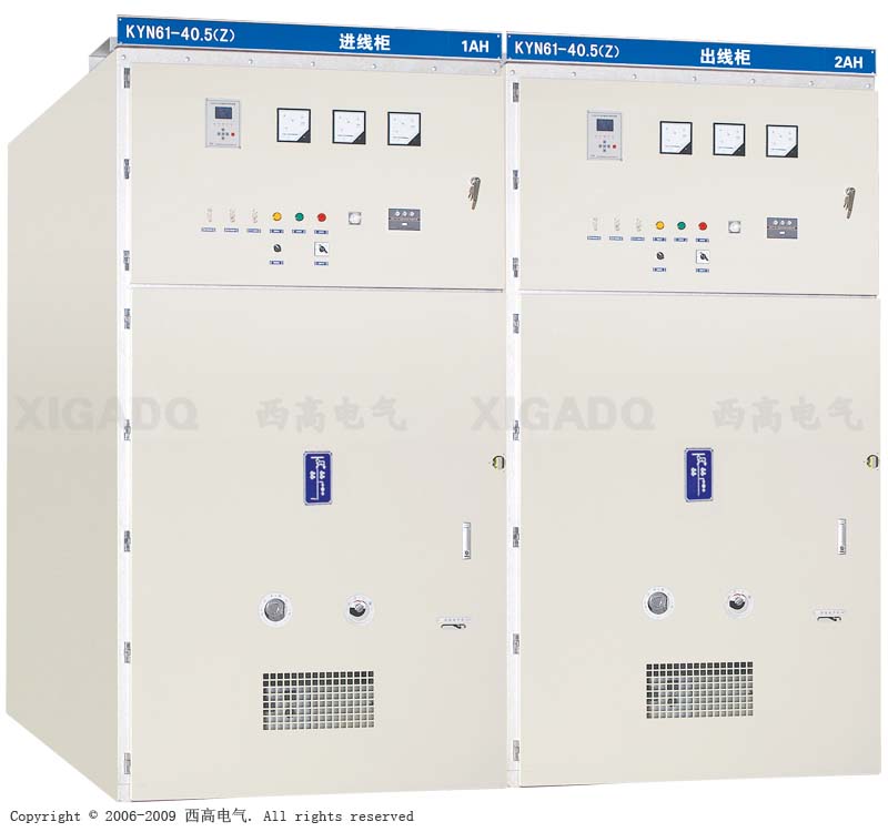 KYN61-40.5交流金屬鎧裝移開式開關設備(以下簡稱開關柜)系40.5KV三相交流50HZ成套配電裝置,主要用于發電廠、變電所及工礦企業的配電室接受與分配電能,可實現對電路的控制、保護和監測之用;除廣泛用于一般電力系統外,還可用于頻繁操作的場所。本開關柜符合GB3906-91《3-35KV交流金屬封閉開關設備》、IEC298《交流金屬封閉開關設備和控制設備》。
