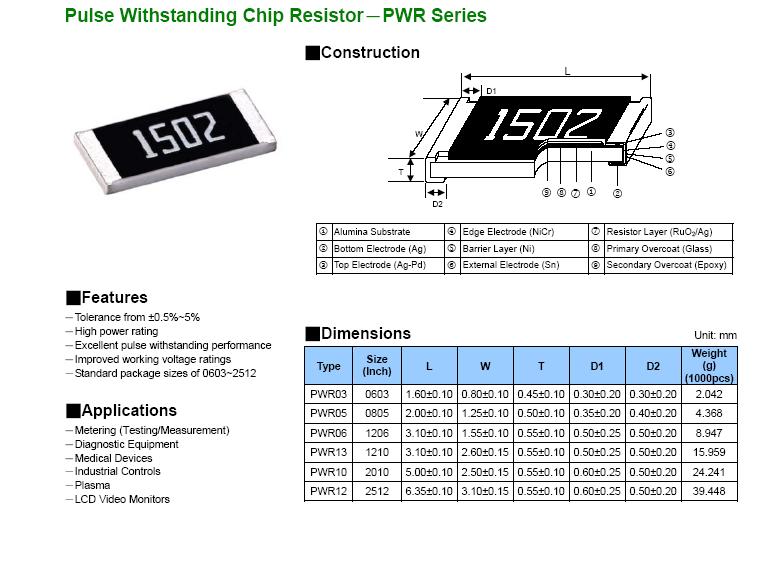 尺寸封裝: (0603;0805;1206;1210;2010;2512可選)