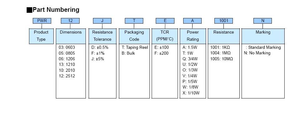 電阻功率: (1/10W;1/8W;1/3W;1/2W;3/4W;1.5W可選)