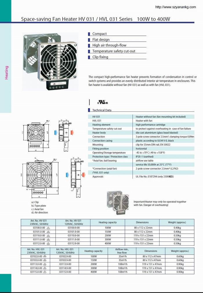 變頻電源柜用HVL031風(fēng)扇加熱器產(chǎn)品詳情