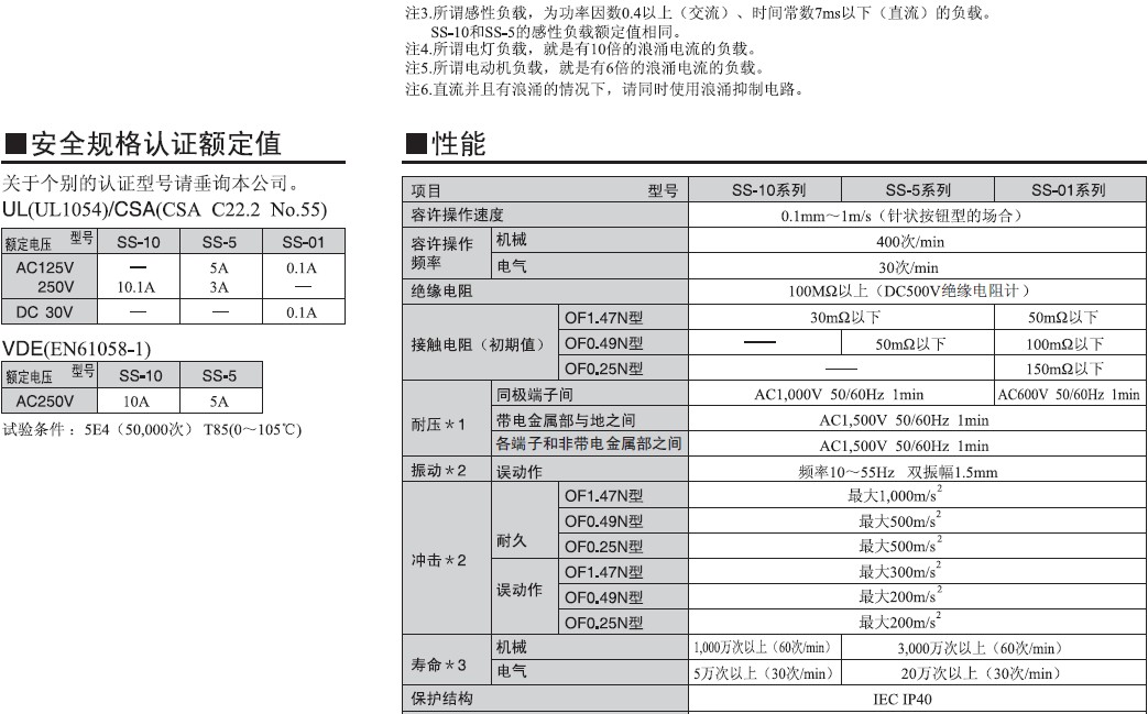 SS小型基本開關(guān):超小型3,000萬次的長壽命