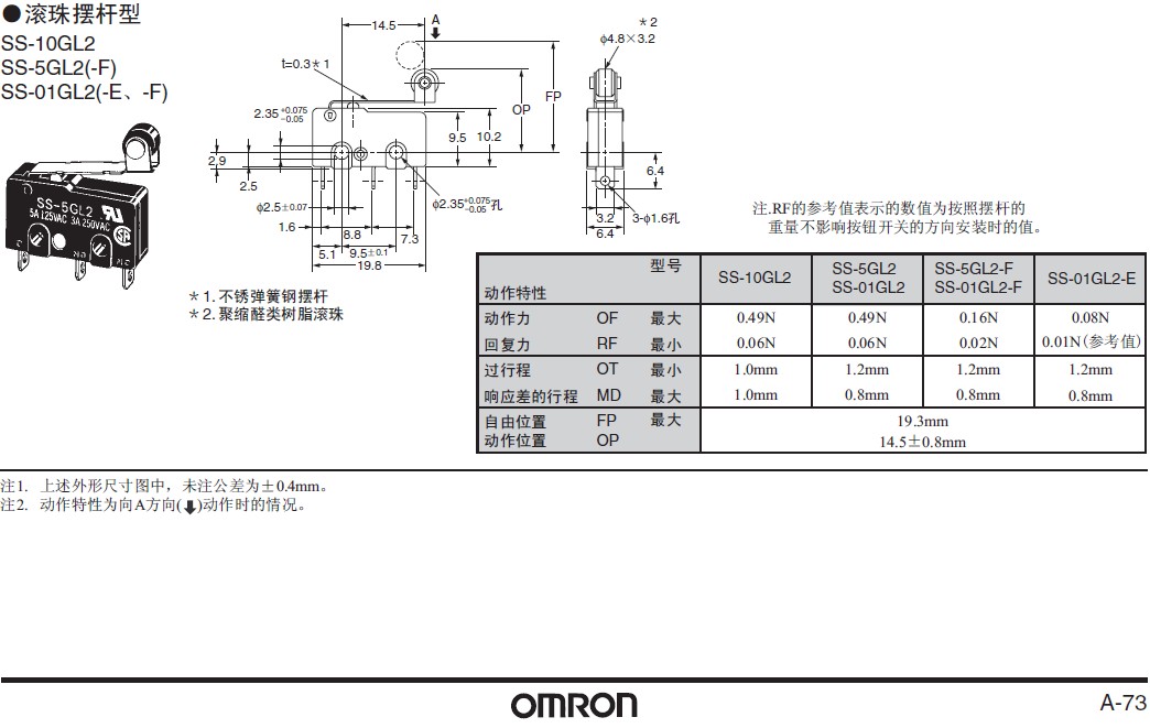 歐姆龍微動(dòng)開關(guān)SS型特點(diǎn)如下