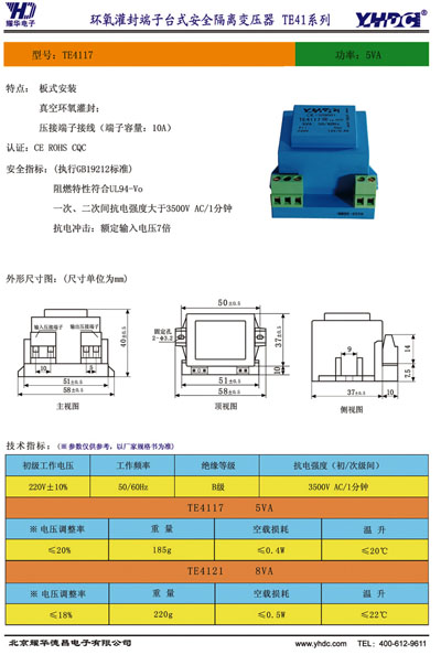 型號:TE4117 TE4121 功率:5VA/8VA