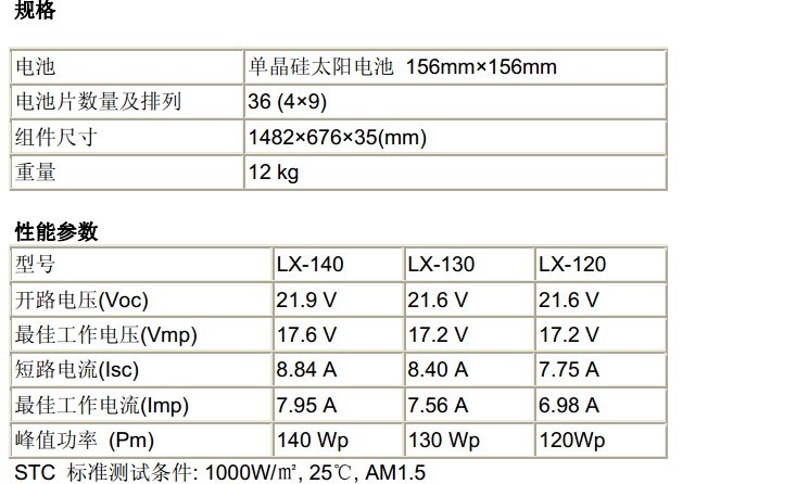 130w太陽能電池板