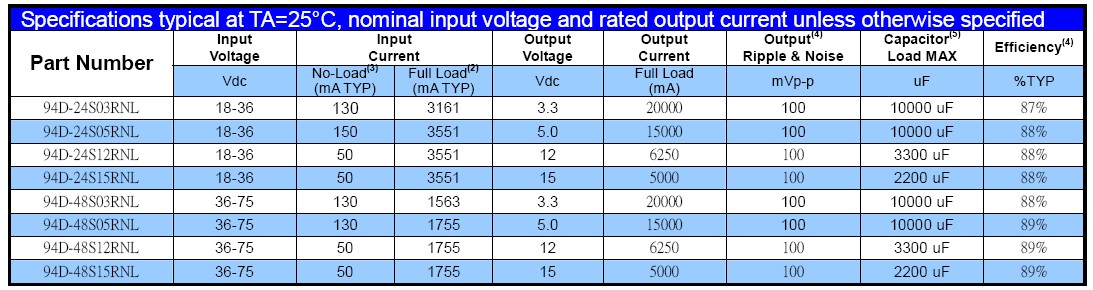 94D系列為2:1寬電壓輸入,隔離穩(wěn)壓單路輸出,輸出功率75W