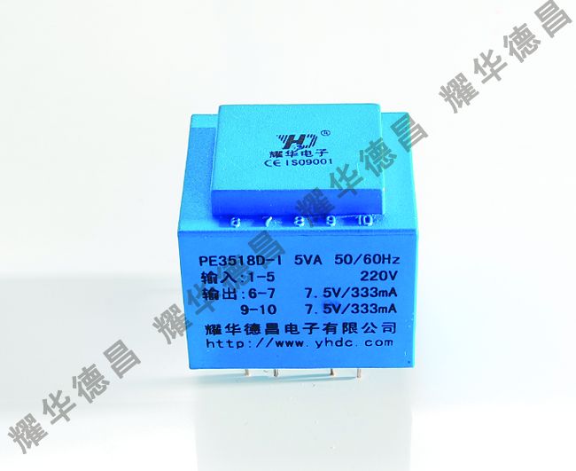 特點:真空環氧灌封 阻燃特性符合UL94-VO 安裝方式:電路板焊接 基本指標:初級工作電壓:220V(或按用戶要求如:110V/230V/380V/400V) 工作頻率:50/60HZ 功率:5VA 認證:CE ROHS CQC 外形尺寸:38*32,5*32