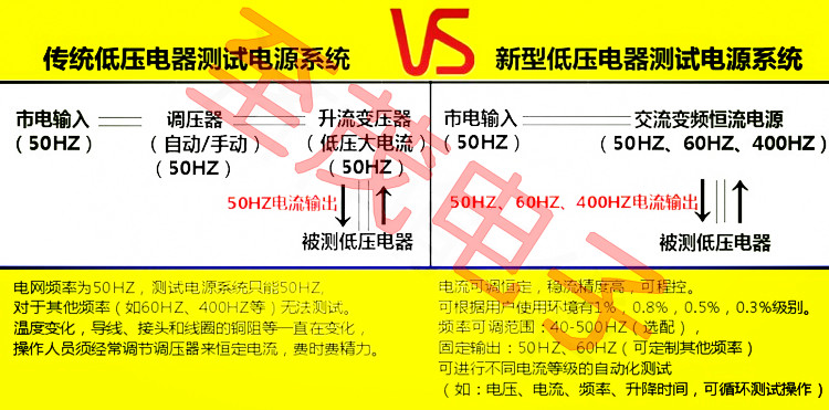 交流恒流源是為低壓電器用戶專門設計制造的,其輸出電流是恒定的,輸出波形為純正弦波,可作為檢測過流實驗儀器。本交流恒流源可帶阻性、感性、容性負載,滿足低壓電器對測試電源的要求,突出優(yōu)點:精度可達0.2%(千分之二)保證輸出電流恒定。通訊可以提供通訊控制軟件以及通訊協(xié)議,方便用戶實現自動化控制,最小控制精度1mA起調,其精度能達±0.1%,此前使用的大電流發(fā)生器方案由于溫度變化,導線、接頭和線圈的銅阻等一直在變化,操作人員須經常調節(jié)調壓器來恒定電流,費時費精力,而且精度是無法與本電源相比的,低壓電器生產中,須對電流進行校驗、老化的項目上,使用本電源是目前最佳選擇,如熱繼電器動作電流的整定,空氣開關熱脫扣電流的測量等。