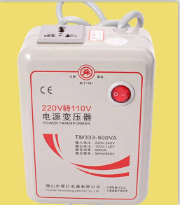 輸入電壓:AC220~240V,輸出電壓:AC100V~120V,功率:500VA(適合450W以下的電器使用),重量:2.6公斤,體積:17*12*7cm