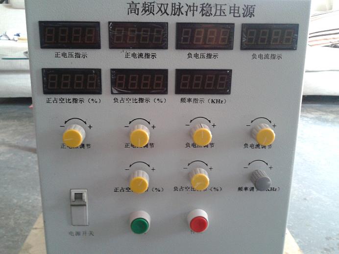 雙脈沖電源有單正脈沖和雙正、負脈沖電源,采用獨特的調制技術,數字化控制。正向脈沖開啟寬度(T+)和負向脈沖開啟時間寬度(T-)可分別在全周期內調節。正向電流、電壓調節、負向電流、電壓均可獨立調節。當電流導通時,脈沖(峰值)電流相當于普通直流電流的幾倍甚至幾十倍,正是這個瞬時高電流密度使金屬離子在極高的過電位下還原,從而使沉積層晶粒變細;當電流關斷時,陰極區附近放電離子又恢復到初始濃度,濃差極化消除,這利于下一個脈沖同期繼續使用高的脈沖(峰值)電流密度,同時關斷期內還伴有對沉積層有利的重結晶、吸脫附等現象。