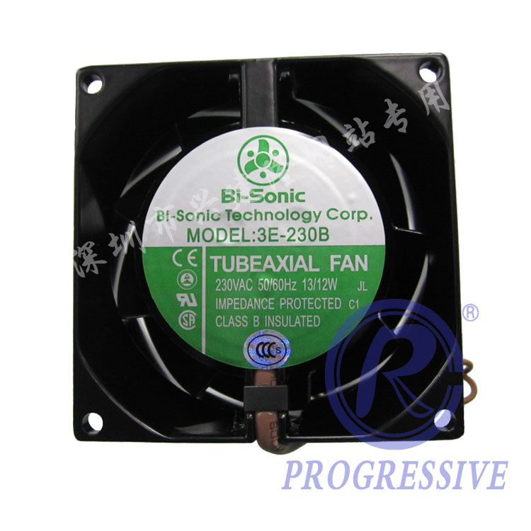 【型號】:3E-230B 【品牌】:百瑞/Bi-Sonic 【尺寸】:80*80*38 【電壓】:230V 【轉速】:2700RPM 【風量】:23.4CFM 【噪音】:31分貝 【軸承】:雙滾珠
