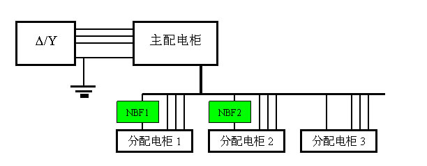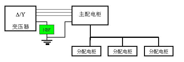 NBF連接在變壓器輸出零線上,如圖3所示。NBF連接在分配電柜上,如圖4所示。