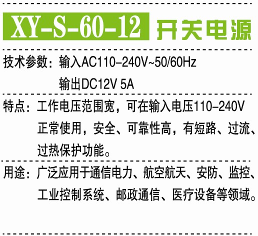12v鐵殼開關(guān)電源 12V 5A鋁殼電源 XY-S-60-12 新英監(jiān)控電源
