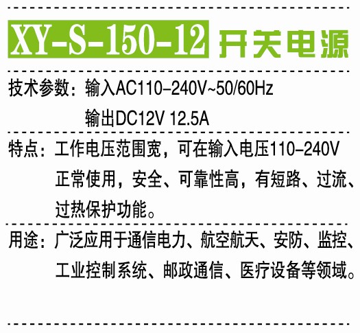 12v鐵殼開關電源 12V 12.5A鋁殼電源 XY-S-150-12 新英監控電源
