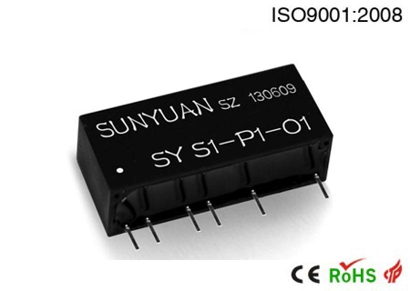 SY S-P-O芯片內部集成的高效率DC-DC能產生多組隔離電源,分別給內部的輸入放大電路、調制電路供電,和輸出的解調電路、轉換電路、整形電路供電。SMD工藝結構及新技術隔離措施使該器件能達到:工作電源與信號通道之間3000VDC兩隔離,并且能滿足工業(yè)級寬溫度、潮濕、震動的現(xiàn)場惡劣工作環(huán)境要求。