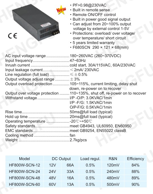 衡孚開關電源N+1系列HF800W-SCN-24(24V33A)產品詳情