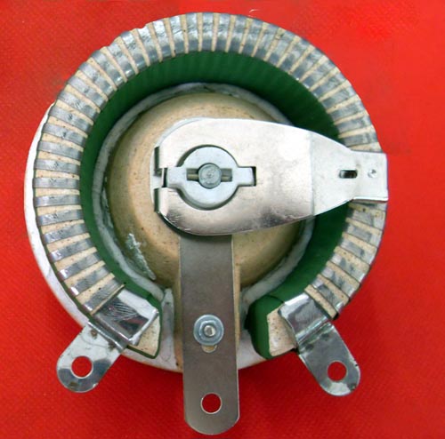 BC1型旋臂線式電阻器,是采用合金電阻絲繞于圓環(huán)形陶瓷骨架上后用高溫釉燒結(jié)固定,磁盤中心配以轉(zhuǎn)軸帶動(dòng)電刷在電阻體上,從而獲得變化的電阻值。
