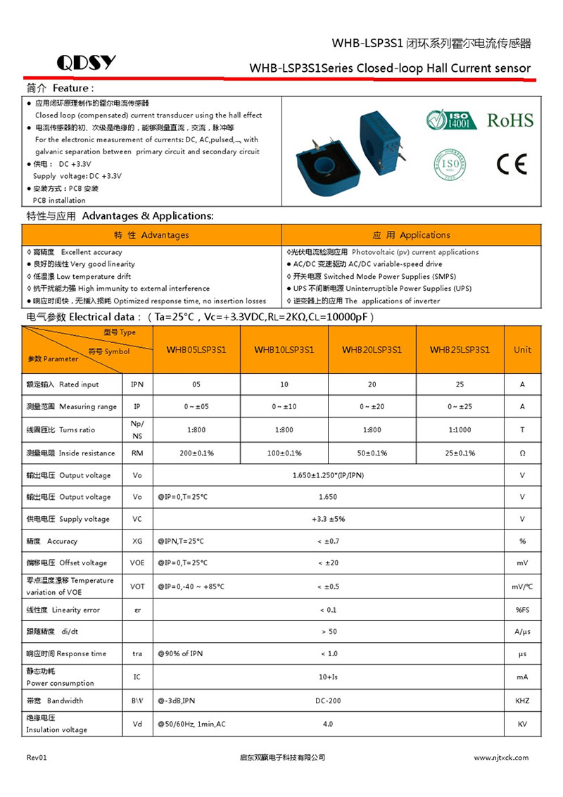 (閉環(huán))霍爾電流傳感器WHB-LSP3S1