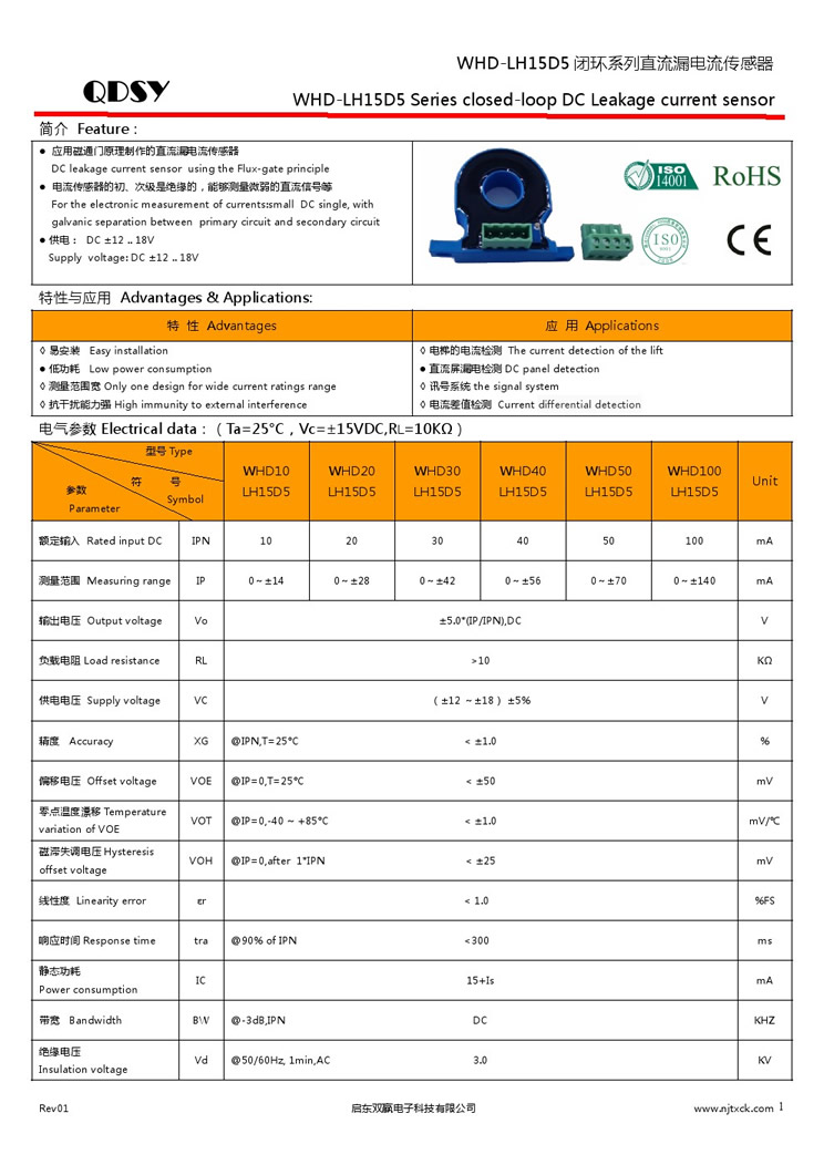 WHD-LH15D5閉環(huán)系列直流漏電流傳感器產(chǎn)品詳情