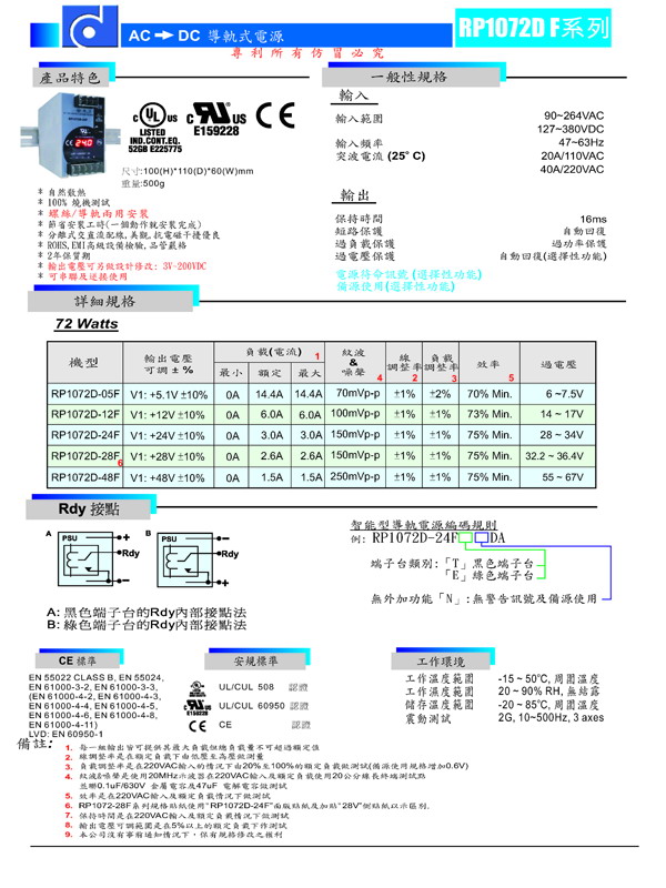 RP1072D-24F , 24V3A數(shù)顯導軌電源性能參數(shù)
