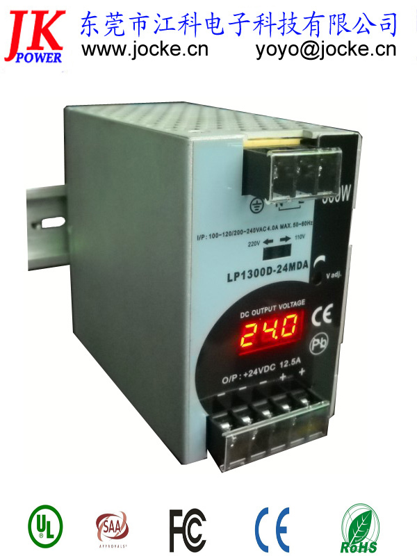 LP1300D-24MDA,24V12.5A數顯導軌式開關電源