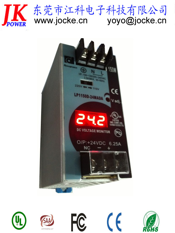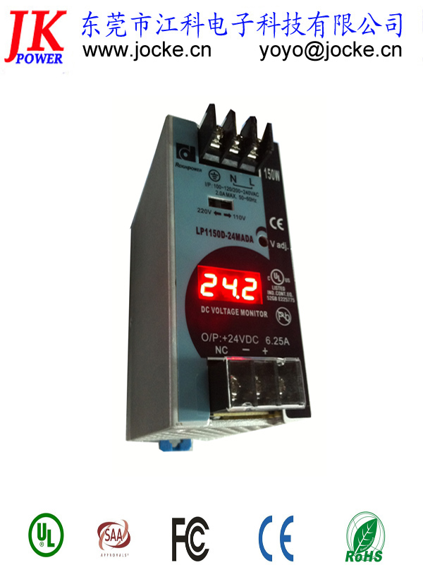 規格:LP1150D-24MADA,24V6.25A數顯導軌式開關電源