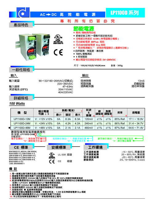 3、輸入電壓:100/220V AC(切換式電壓) ,符合全球使用標(biāo)準(zhǔn);