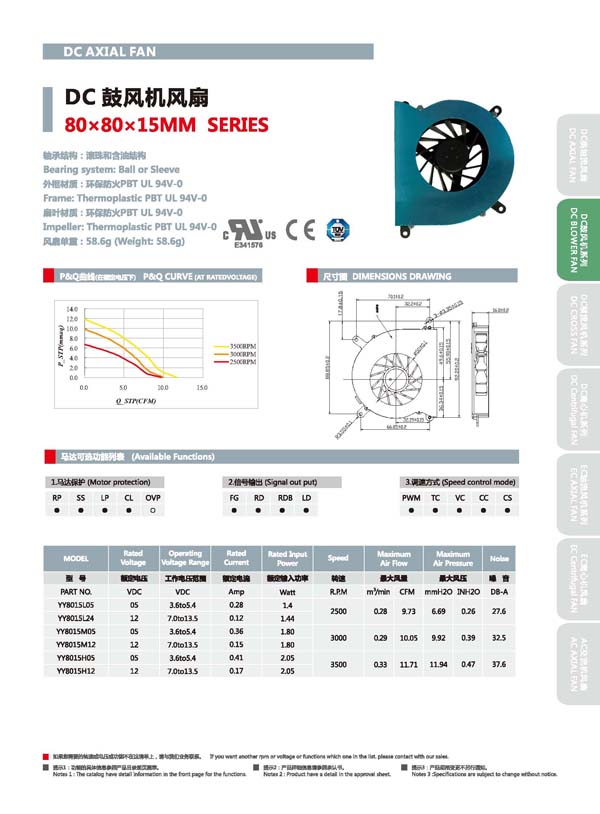 DC鼓風機風扇YY8015