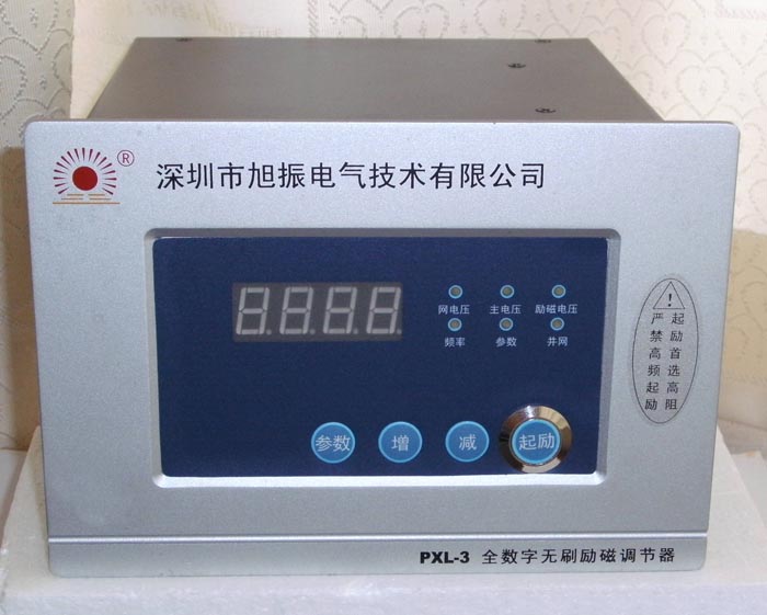 深圳市旭振電氣技術有限公司生產的全數字晶閘管無刷勵磁調節器PXL-3專為中小型發電機低壓機組開發的微機勵磁調節器。它具有結構簡單,性能可靠,人機界面優良,操作簡單等優點。其中核心控制部件平均無故障時間將近10年。該調節器幾乎把所有調節功能軟件化,其技術特點包括: