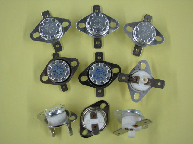 一、產(chǎn)品性能及原理:本公司生產(chǎn)的 KSD301 系列控溫器,是帶外殼全封閉的雙金屬片接觸感溫式溫度繼電器,通過碟形金屬片在溫度作用下產(chǎn)生變形,并在溫度點瞬間跳動的原理,配合機(jī)構(gòu)的作用,使兩觸點迅速動作,達(dá)到接通或斷開電路的目的。適用于額定電壓不大于 250V ,頻率在 50Hz-60Hz ,額定電流不超過 10A 阻性負(fù)載的交直流電路中使用。 二、注意事項: 1 )采用接觸感溫式安裝時,應(yīng)使金屬蓋面貼緊被控器具的安裝面,為確保感溫效果,并在感溫表面涂上導(dǎo)熱硅脂或其他性能類似的導(dǎo)熱介質(zhì)。 2 )安裝時不可把蓋面頂部壓塌、松動或使用變形,以免影響性能。 3 )不能讓液體滲入控溫器內(nèi)部或過大力使外殼出現(xiàn)裂紋,不得隨意改變外接線端子的形狀,影響電氣可靠性,有足夠的絕緣保護(hù)措施,防止漏電,確保使用安全。 4 ) 產(chǎn)品在不大于 5A 電流的電路中使用,應(yīng)選擇銅芯截面為 0.5-1m㎡ 導(dǎo)線連接;不大于 10A 電流的電路中使用,導(dǎo)線選擇為銅芯截面為 0.75-1.5m㎡導(dǎo)線連接。 5 ) 產(chǎn)品應(yīng)在相對濕度小于 90%,環(huán)境溫度40℃以下通風(fēng)、潔凈、干燥、無腐蝕性氣體和受熱的倉庫中存放。 6 ) 適用范圍:適用飲水機(jī)、電熱開水瓶、消毒柜、微波爐、電熱咖啡壺、電飯鍋、空調(diào)器等各種電熱器具。