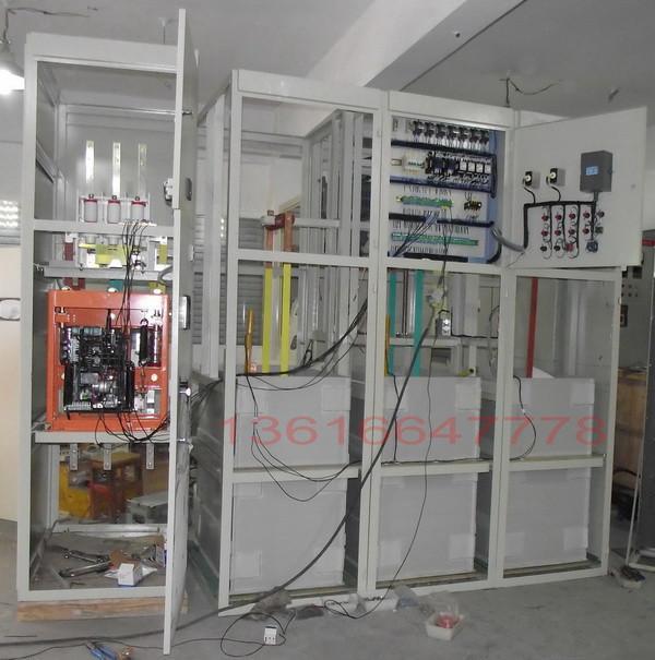 3、水阻箱:電液箱在柜內(nèi)下部,箱內(nèi)安裝有液體電阻起動(dòng)(未定)、定極板。在主機(jī)起動(dòng)過程中正是通過控制改變他們之間的間距來(lái)實(shí)現(xiàn)軟起動(dòng)的。箱內(nèi)還設(shè)有液位過低、液溫過高等保護(hù)開關(guān),在主機(jī)起動(dòng)前一旦液面低于液位線,就有報(bào)警輸出,同時(shí)產(chǎn)生電氣聯(lián)鎖禁止起動(dòng)。在停機(jī)斷電的情況下方可通過加水孔(排潮孔)注入清水(自來(lái)水),直到液位過低報(bào)警消除即可。電液箱是本裝置的核心之一,只有在箱體完好、狀態(tài)(包括液溫、液位)輸出正常、動(dòng)定極板位置適宜,本柜才能輸出允許起動(dòng)信號(hào),主機(jī)才能進(jìn)行起動(dòng)操作。關(guān)于允許起動(dòng)信號(hào)所包含的全部條件將在使用及維護(hù)中進(jìn)行介紹。