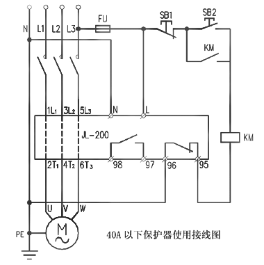 JL-200缺相保護器規格:直接接線:1A(0.2A~1A);5A(1A~5A);20A(4A~20A);40A(8A~40A);