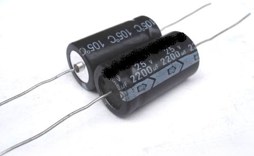臥式電解電容:容量從0.47μF-10000μF,電壓從6.3V—100V,直徑由5MM—25MM,壽命